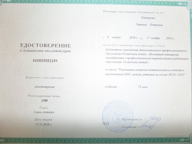Диплом успешно прошёл тест "Учитель изобразительного искусства в соответствии с требованиями профессионального стандарта и ФГОС" 2018 г.